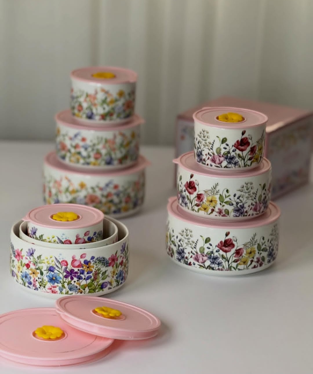 ظرف فریزری سه تیکه گلدار پرسلین(ظرف نگهدارنده)