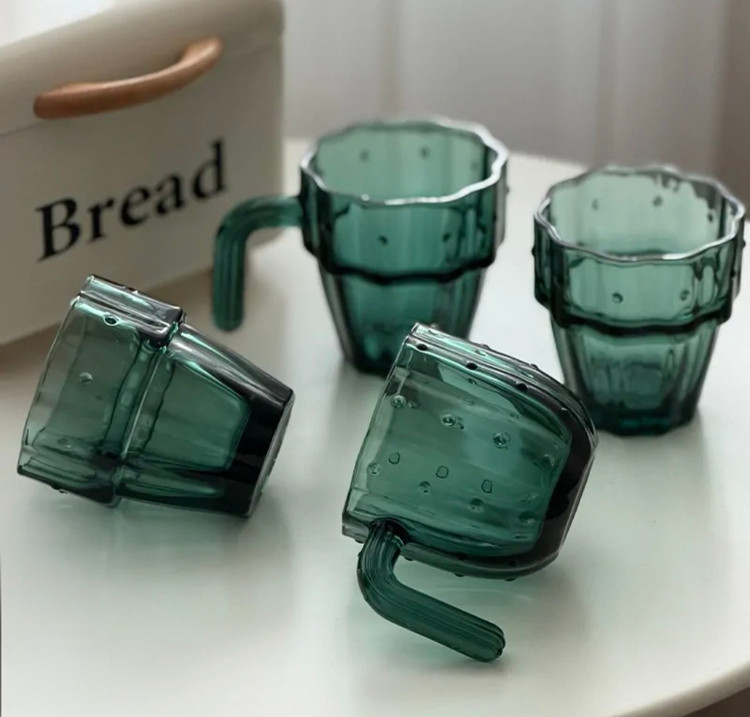 ست ماگ و نیم لیوان بلور طرح کاکتوس