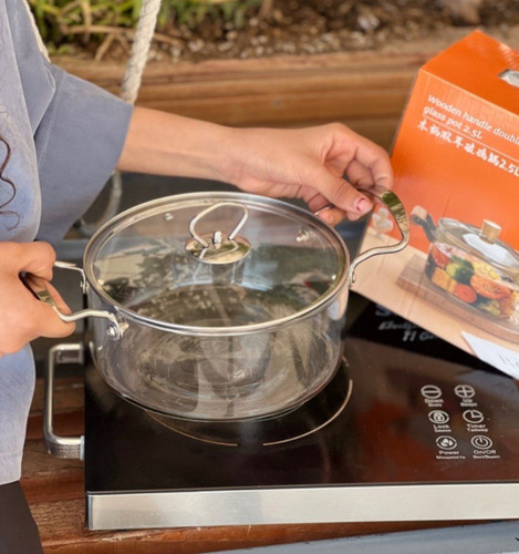 قابلمه پیرکس ۲/۵ لیتری دسته استیل
