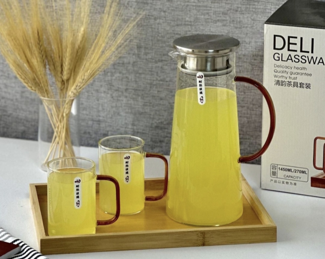ناموجودپارچ و لیوان پیرکس دلی با سینی بامبو